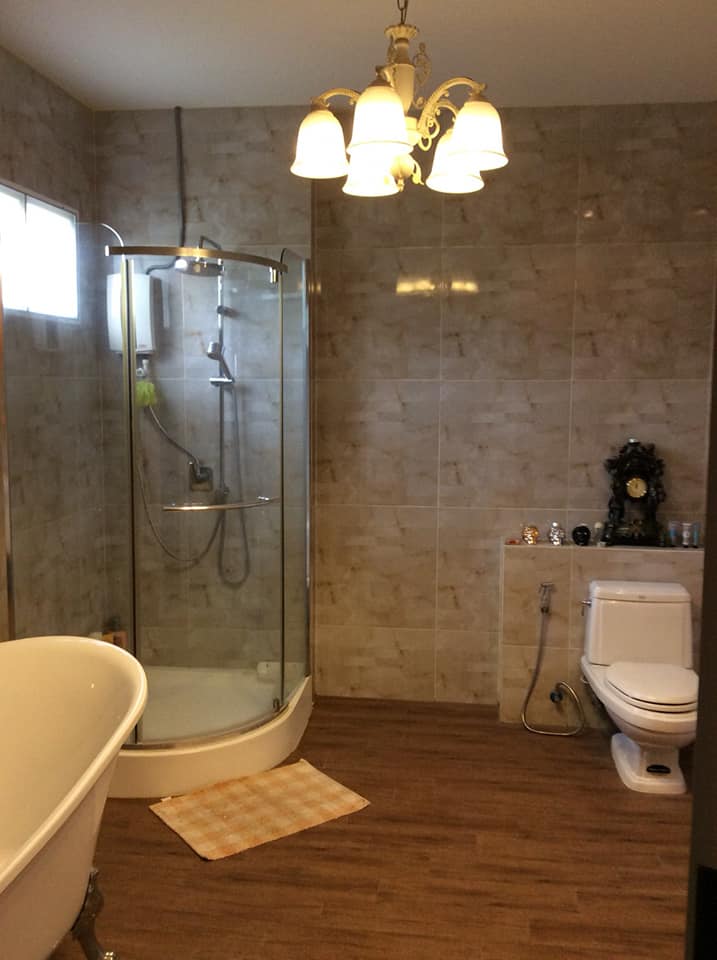 #บ้านหลังที่2 - 3 ห้องนอน, 2 ห้องน้ำ+เครื่องทำน้ำอุ่น, - 1 ห้องครัว พร้อมซิงค์ เตาแก้ส ฮูท, แอร์ 4 ตัว - ที่จอดรถ 3-4 คัน ในรั้วบ้าน และห้องรับแขก พร้อมเคาร์เตอร์บาร์